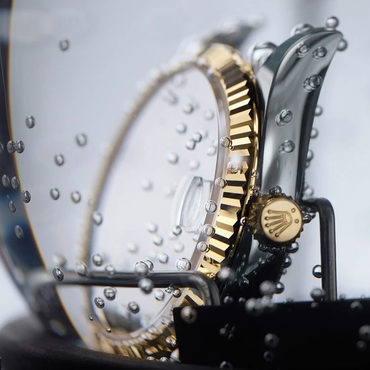L’impermeabilità dell’orologio è controllata attraverso un test in acqua, sotto pressione; dopo di che, il bracciale è rimontato sulla cassa.
