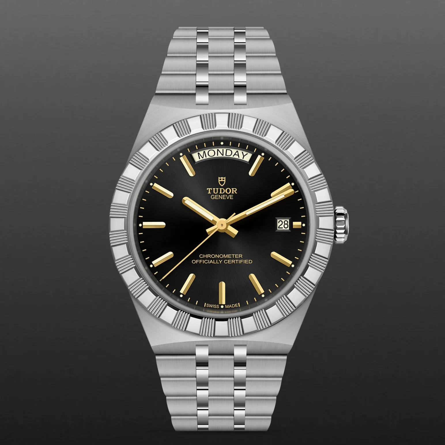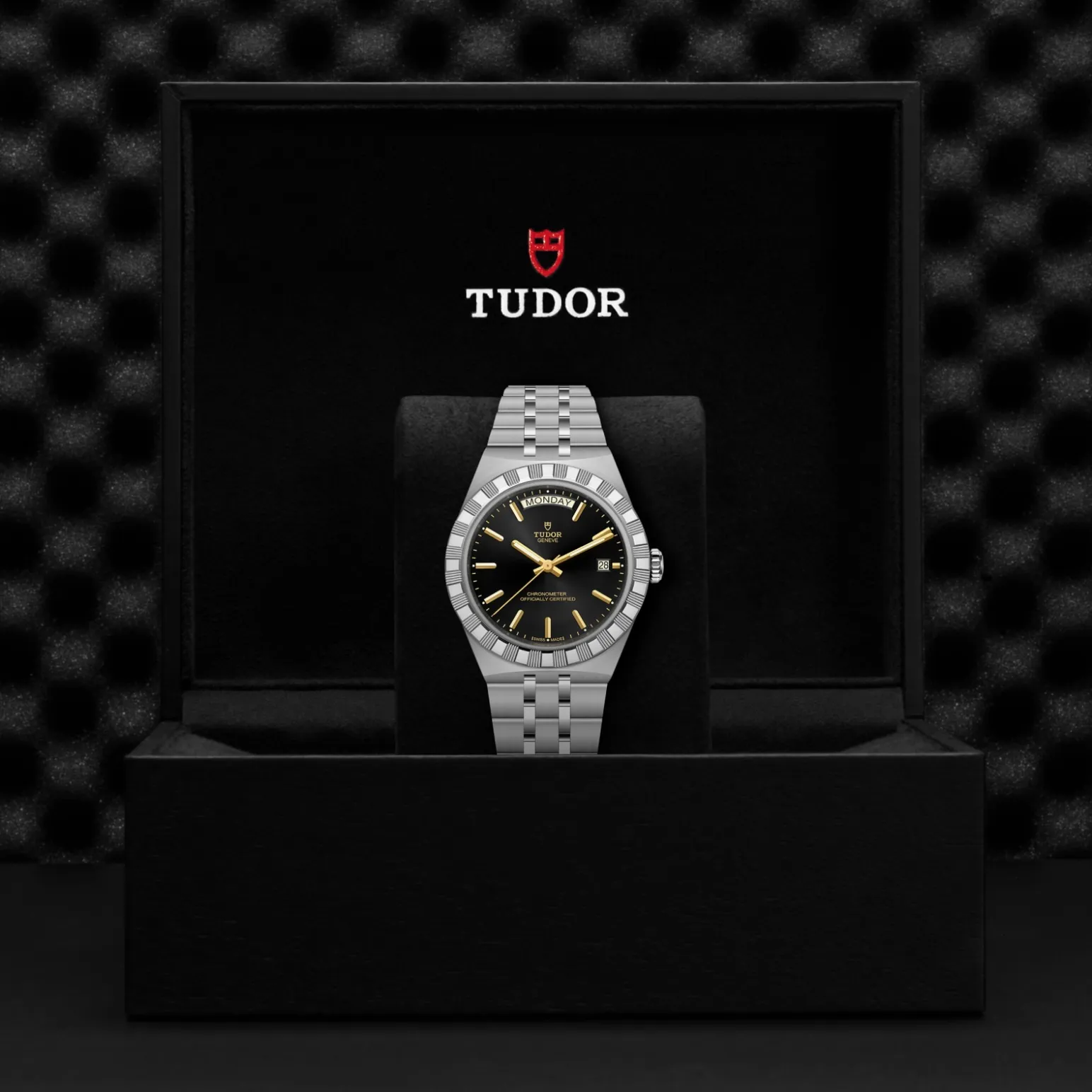 Il nome Royal fu usato per la prima volta da TUDOR negli anni ’50 per sottolineare la qualità superiore dei suoi orologi. La linea TUDOR Royal rientra nella tradizione del Marchio di proporre segnatempo dallo stile sportivo ed elegante, con movimenti automatici e bracciali integrati, ad un prezzo accessibile ma che non scendano a compromessi sulla qualità. Orologi dalle prestazioni tecniche all’avanguardia e l’estetica raffinata, al crocevia tra i modelli classici e quelli sportivi, i segnatempo di questa linea sono disponibili in acciaio o acciaio e oro e proposti in quattro misure con una vasta selezione di quadranti.